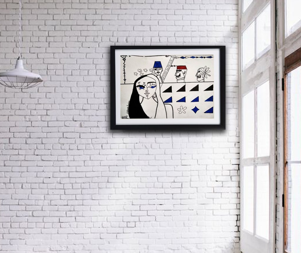 Dessin sur papier encadré en verre.