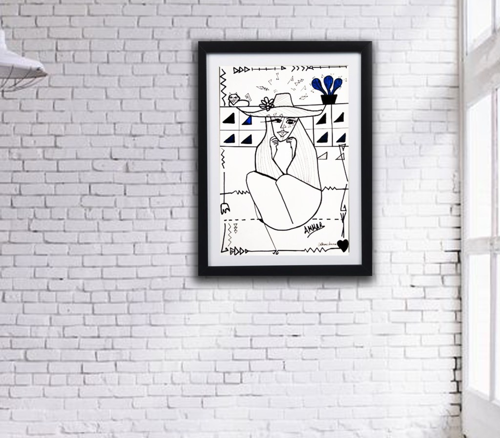 Djerbienne dessin sur papier encadré en verre.