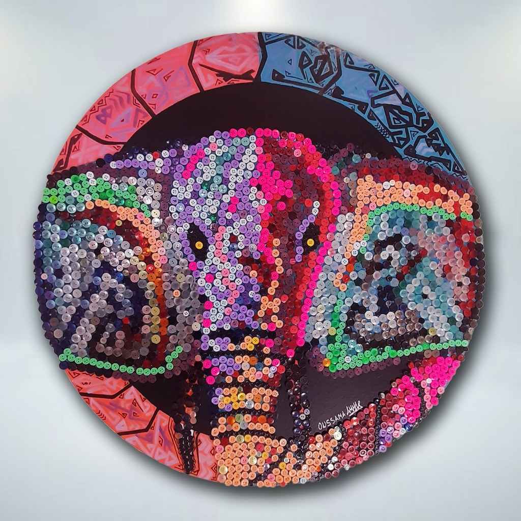 Tableau Peinture MIXTE « Acrylique , Bouton en plastique crée en 2022, l’œuvre est toile sur châssis en bois , le tableau exposé à ATELIER 2080.