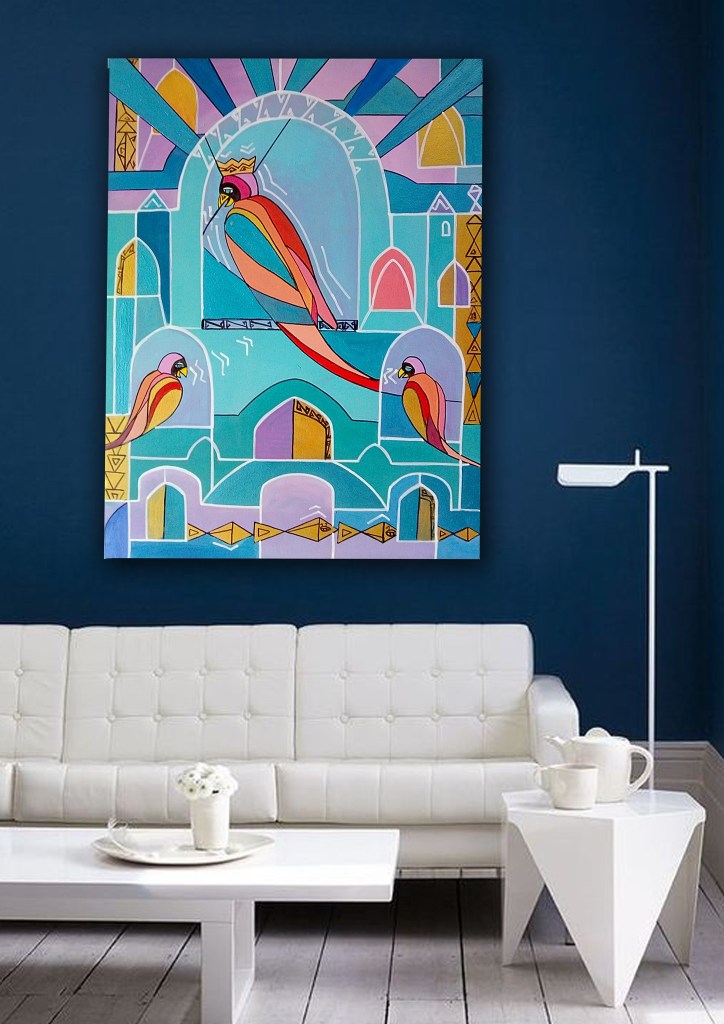UTOPIA Tableau de peinture Acrylique sur toile , réalisé en 2018 , l’œuvre exposé avec union des artistes plasticien tunisien au Palais Italien SAINT CROIX AU MEDINA DE TUNIS.